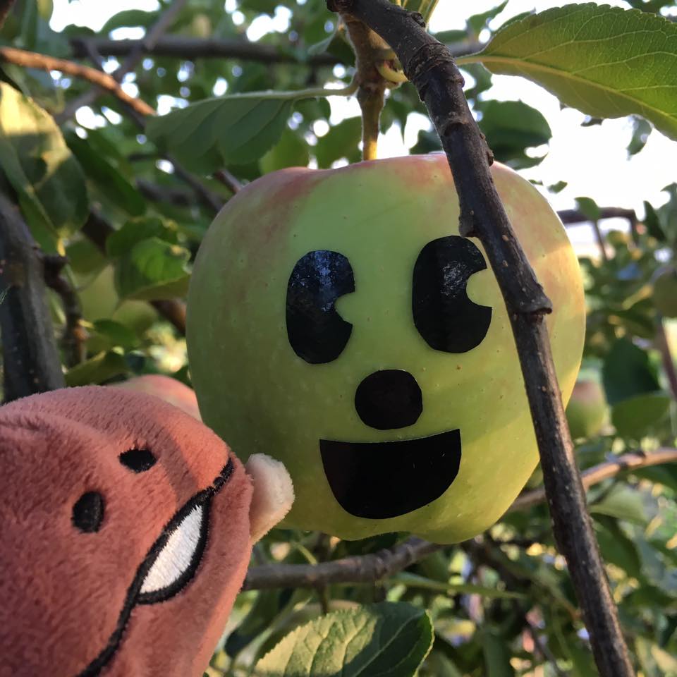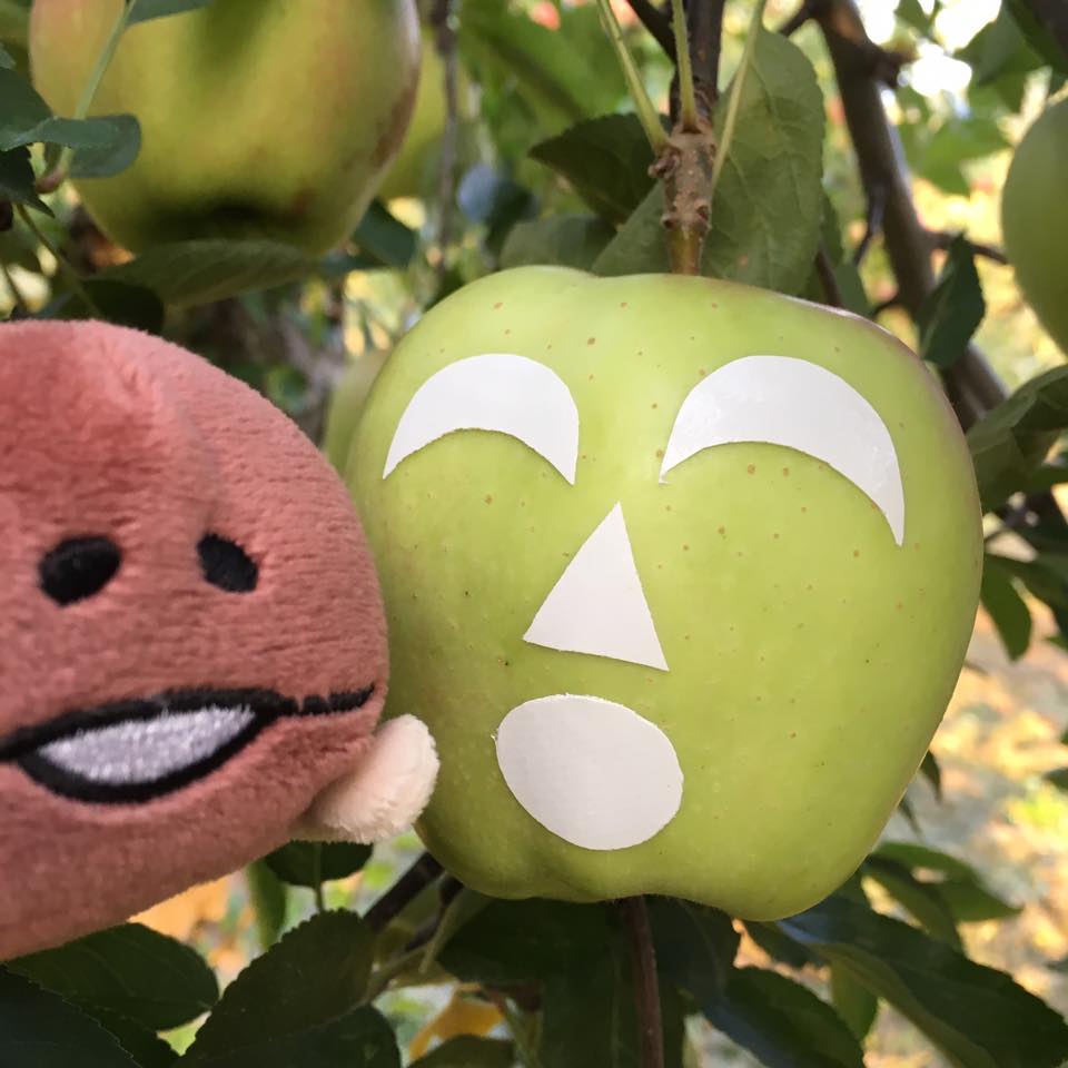 シールを貼るりんごの品種は「スターキング」。アメリカ原産のりんごなんですが、ぶっちゃけ