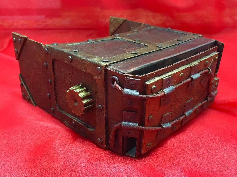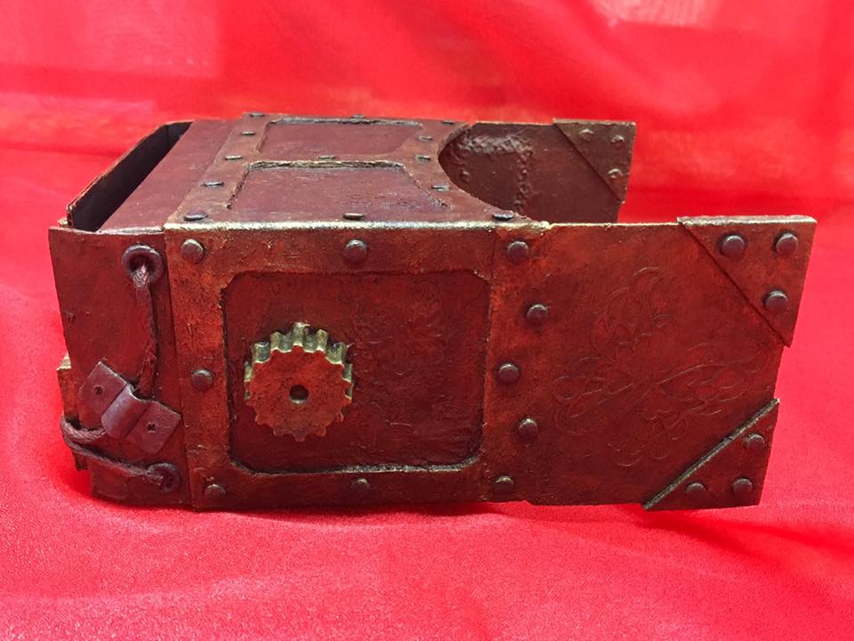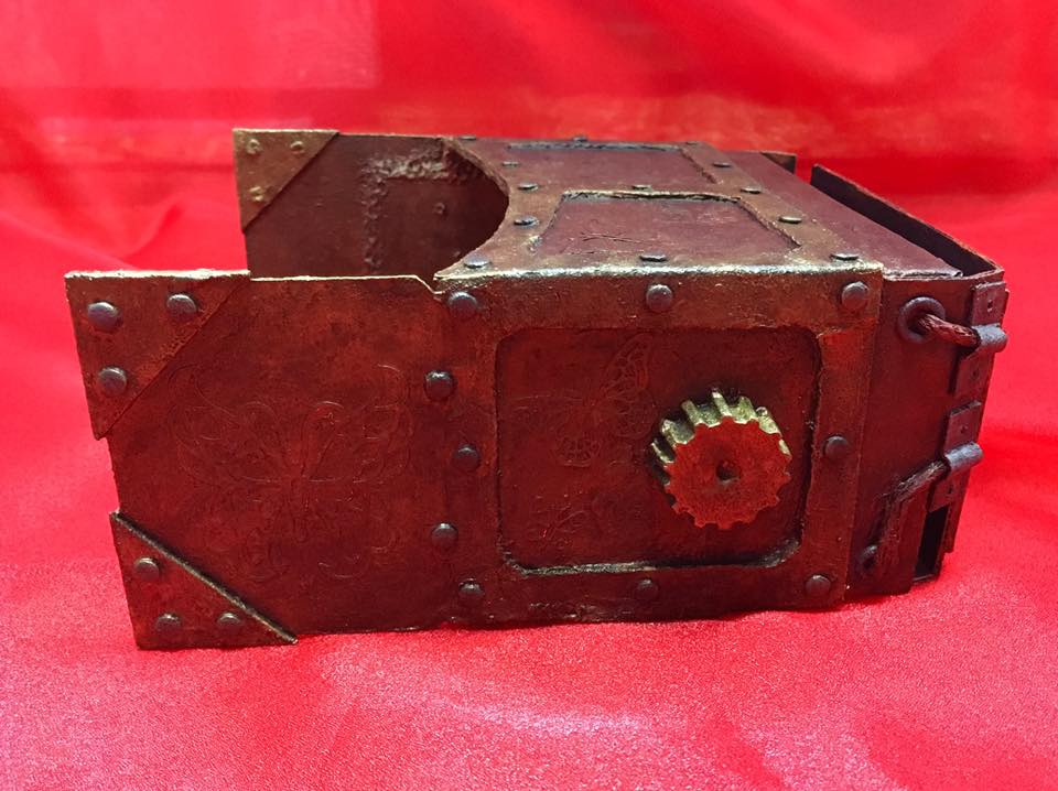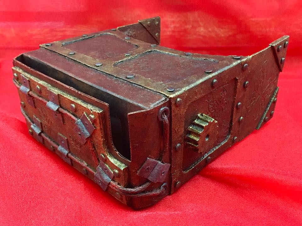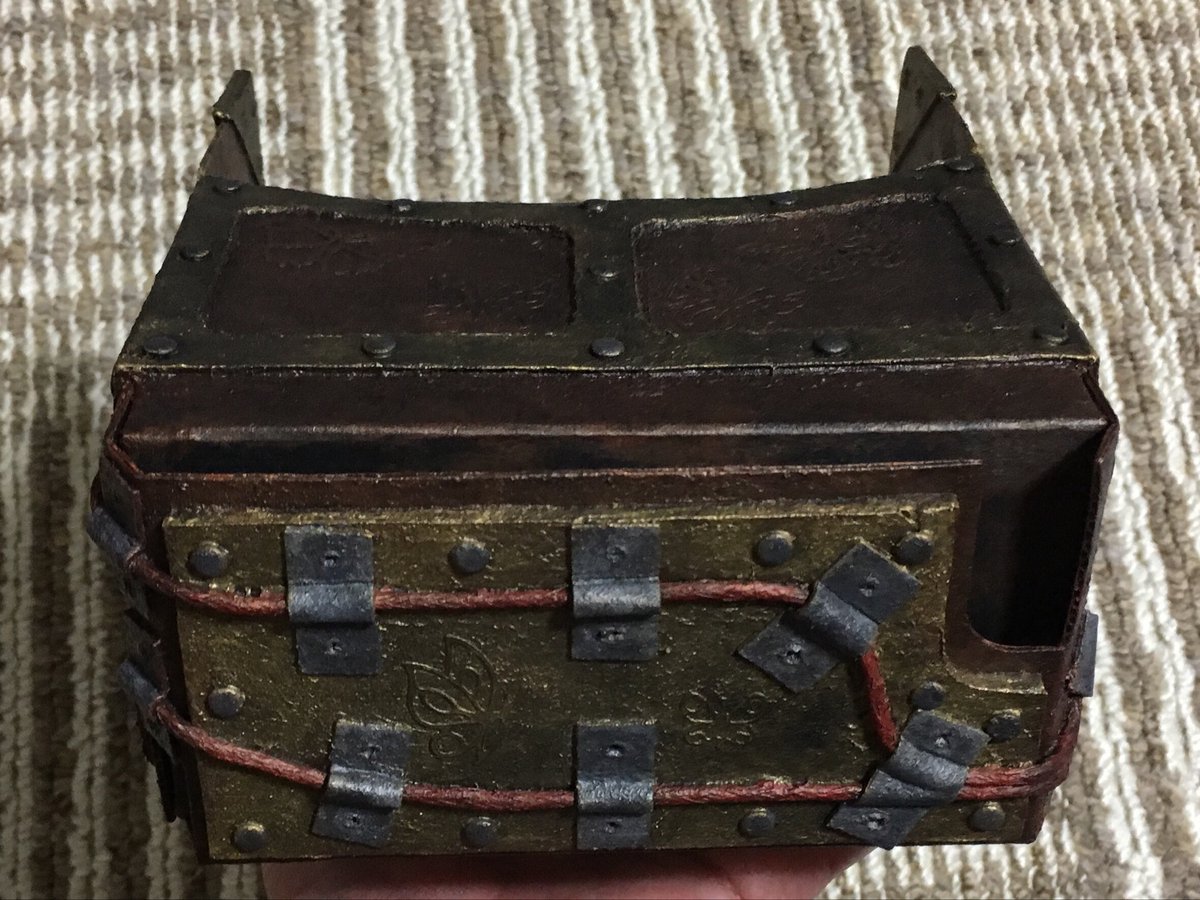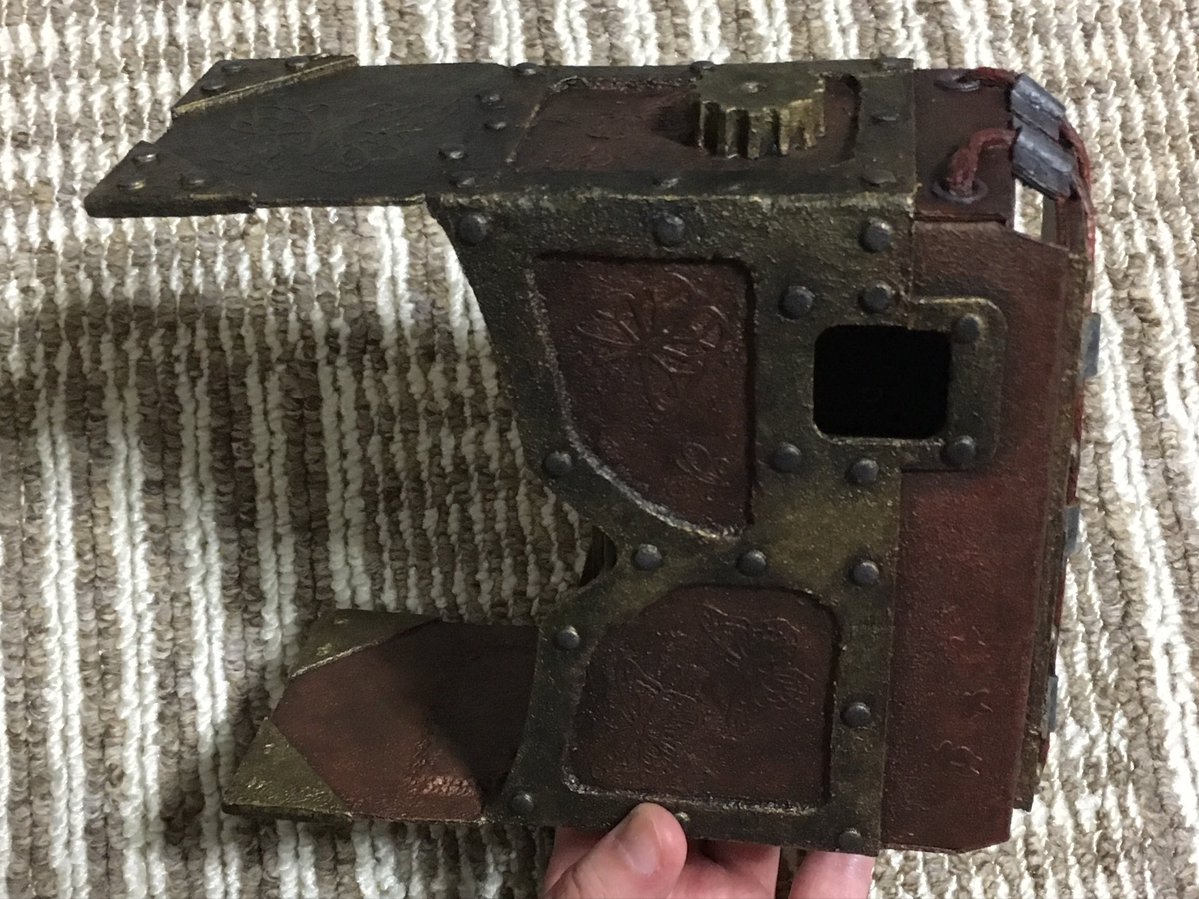 とりあえず余った色を適当に混ぜて全体に塗ってみました。塗装はダイソーで買ったアクリル絵の具です。アクリル絵の具はすぐ乾くので作業効率が上がります。ここまできたらそろそろ「スチームパンク」って言ってもいいでしょう。