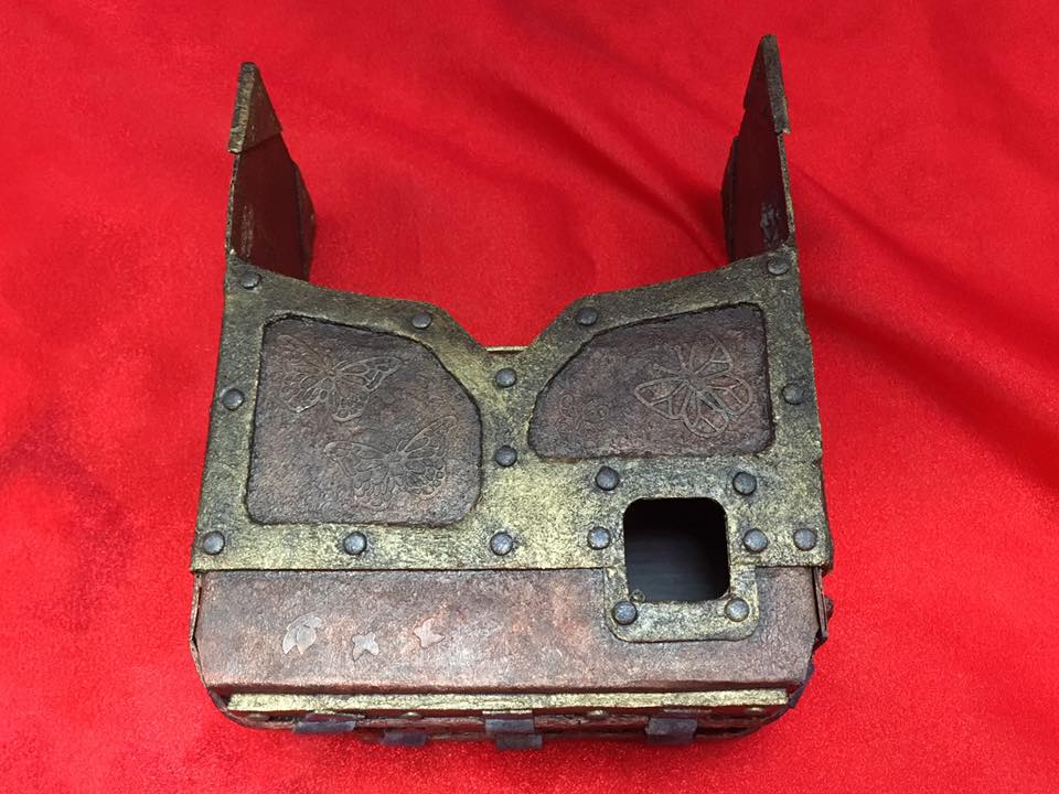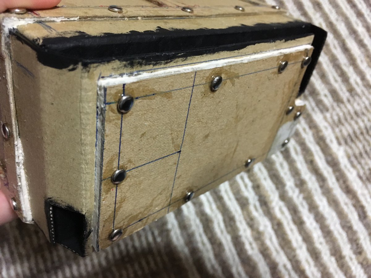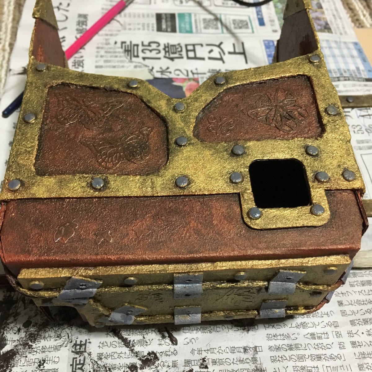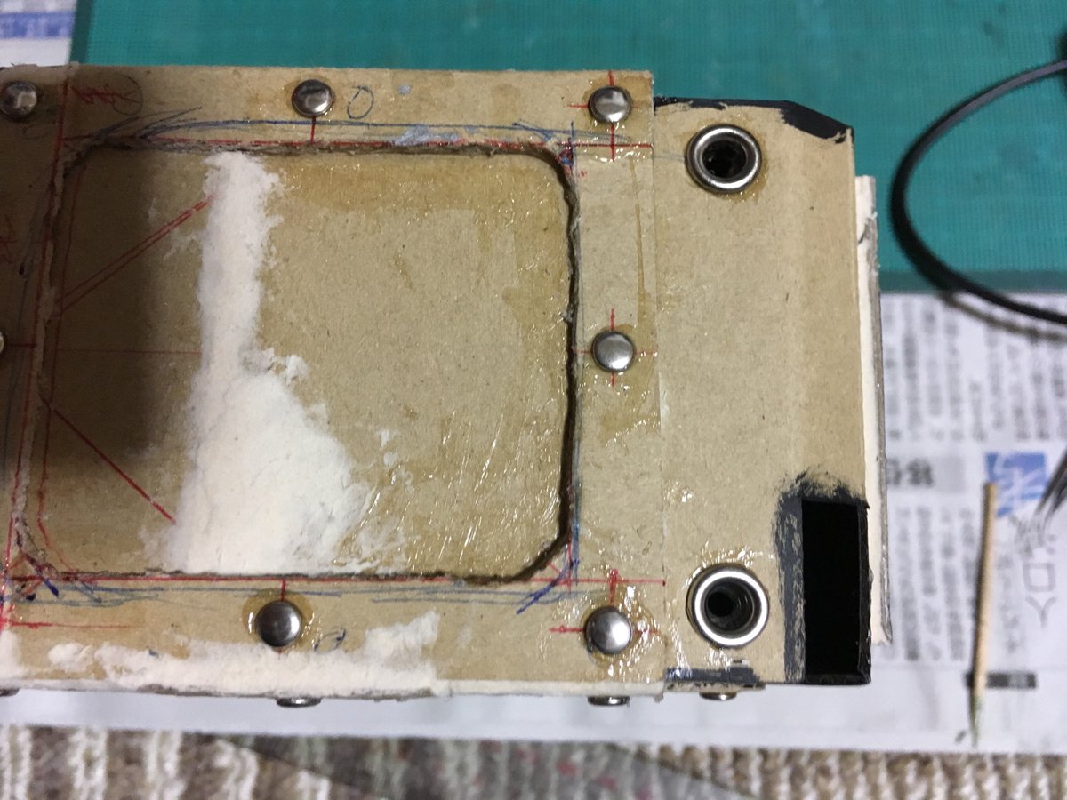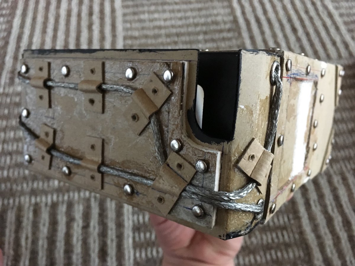 とりあえず余った色を適当に混ぜて全体に塗ってみました。塗装はダイソーで買ったアクリル絵の具です。アクリル絵の具はすぐ乾くので作業効率が上がります。ここまできたらそろそろ「スチームパンク」って言ってもいいでしょう。