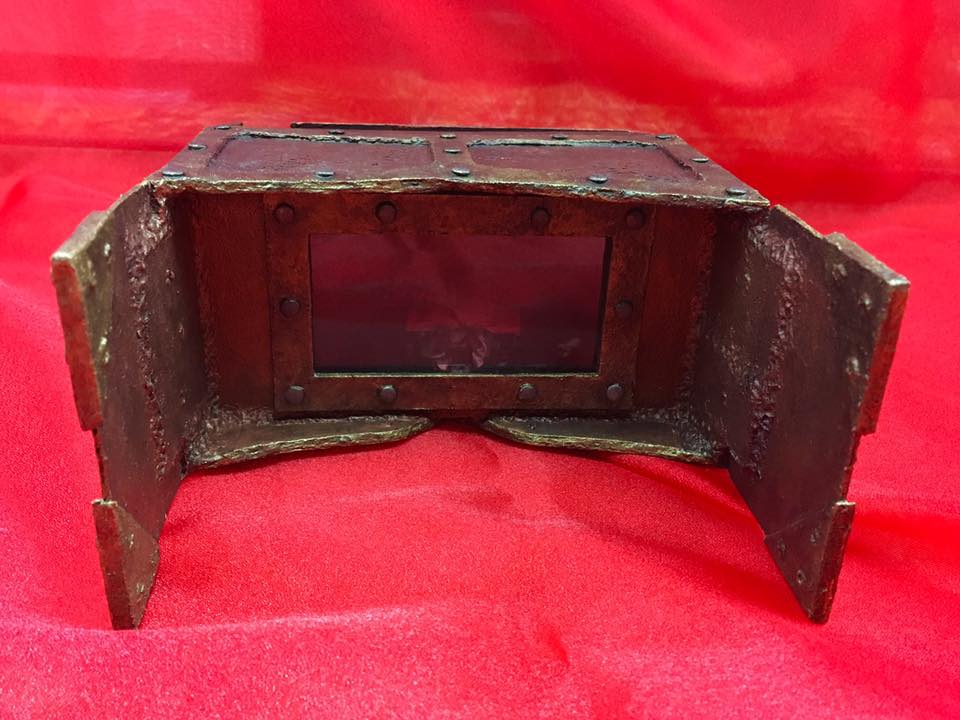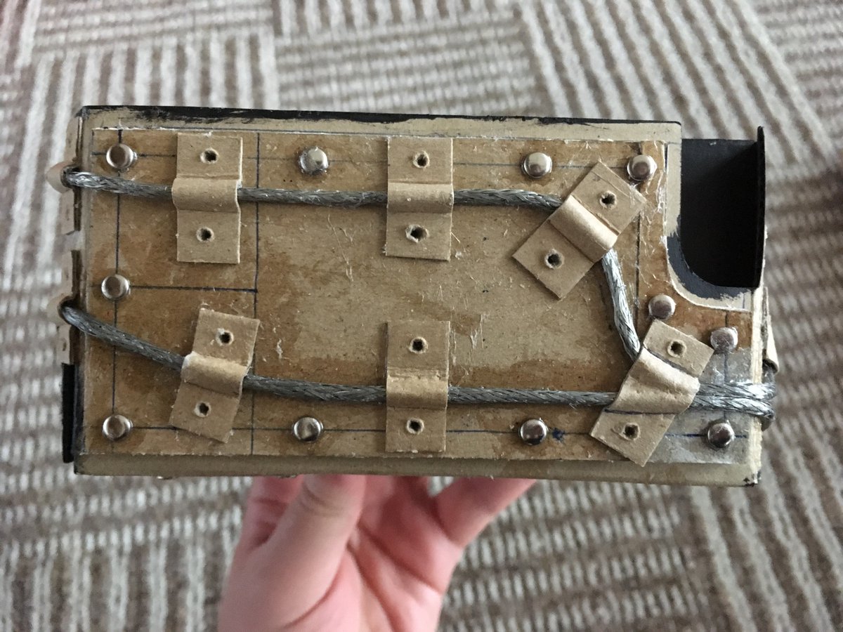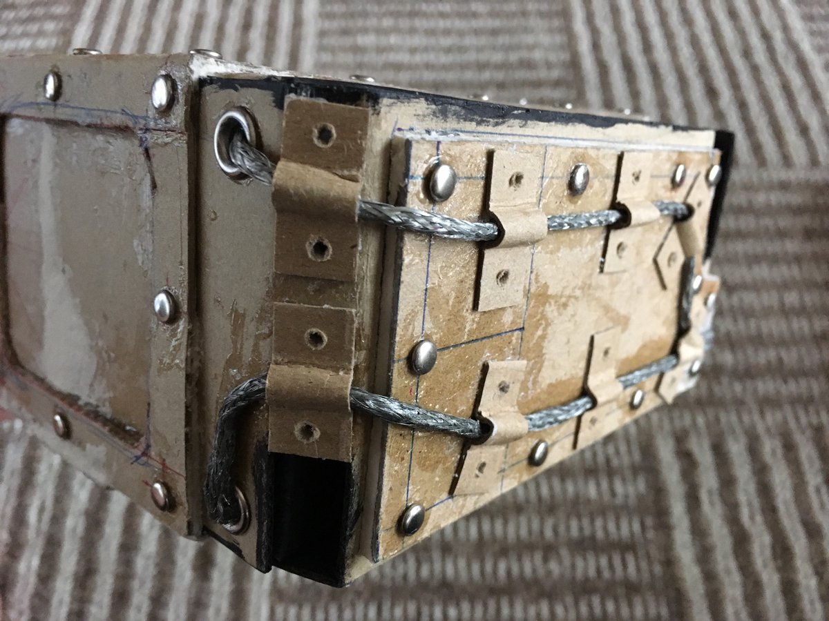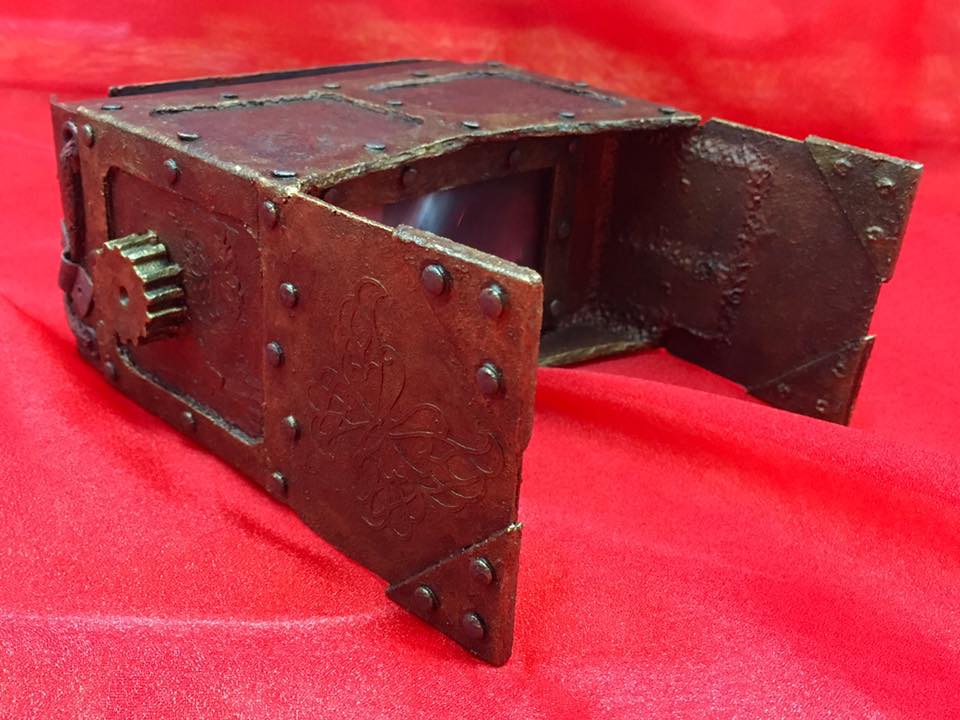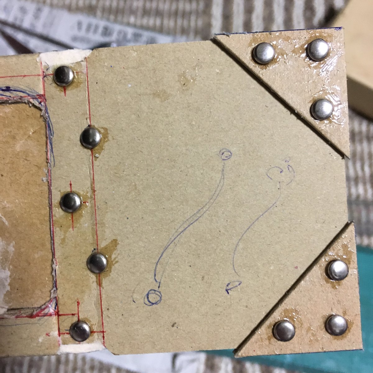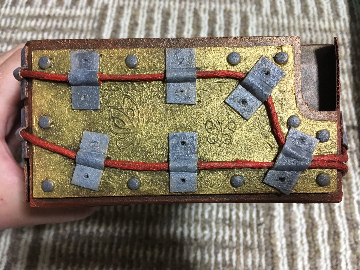 とりあえず余った色を適当に混ぜて全体に塗ってみました。塗装はダイソーで買ったアクリル絵の具です。アクリル絵の具はすぐ乾くので作業効率が上がります。ここまできたらそろそろ「スチームパンク」って言ってもいいでしょう。