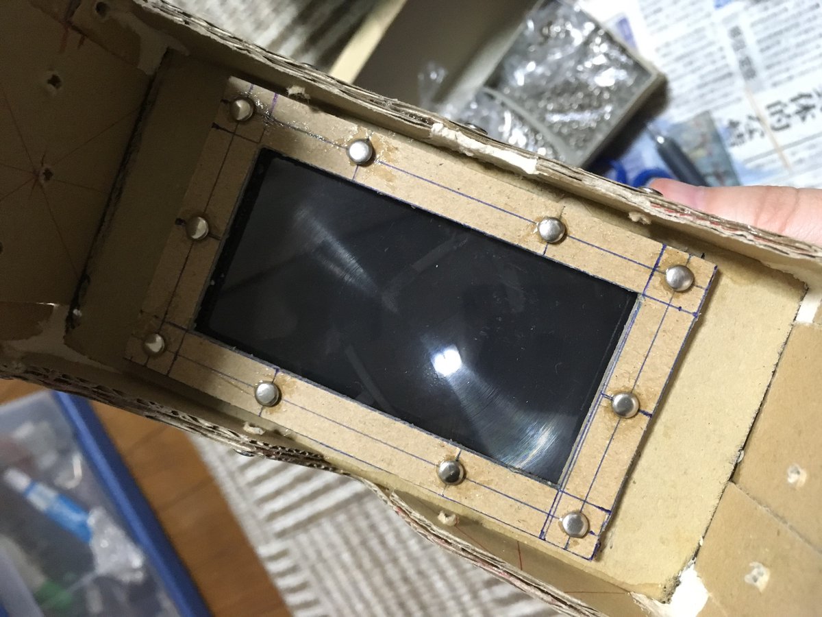 乾燥して触れる状態になった歯車パーツを接着。ここにダイヤル状の歯車があると、なんか商店調節機能があるように見えますが、当然ハコスコにそんな機能はありません。でもただの飾りでもなんか雰囲気出てきたような感じがしません?