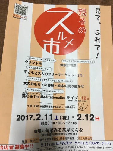 「スルメ市」とは、昨年10月にも開催されたハンドメイドイベントですが、今回は物販以上に「ワークショップ」や「体験」がメインとなっています。前回の様子や会場の雰囲気はこのブログの過去ログをご参照下さい。