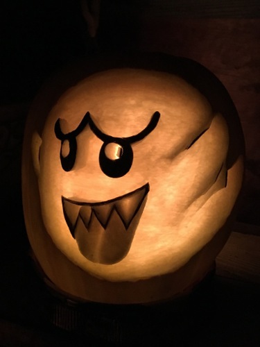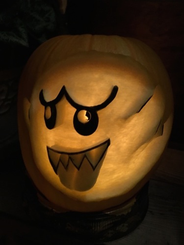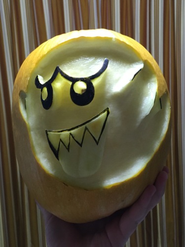 マリオだけ彫るのではつまらない!スーパーマリオシリーズにもお化けキャラいるだろ!ということでお化けのテレサです。こちらは線彫りではなく全体を透かし彫りにしました。やはりハロウィンならお化けキャラがいないとつまらないでしょう。