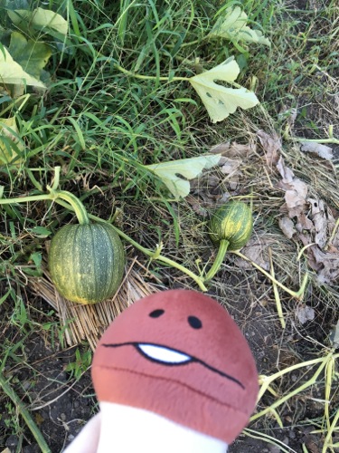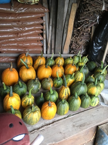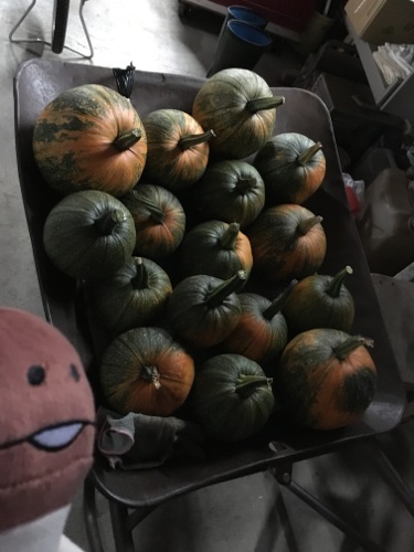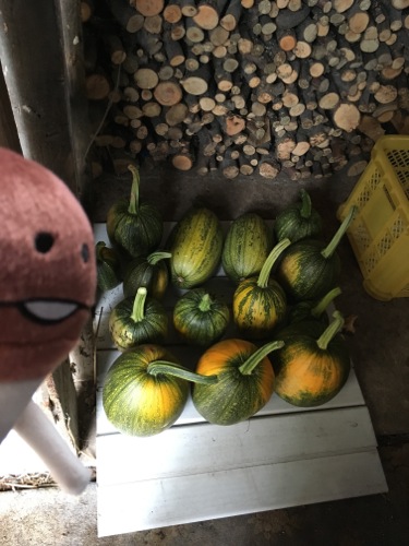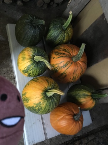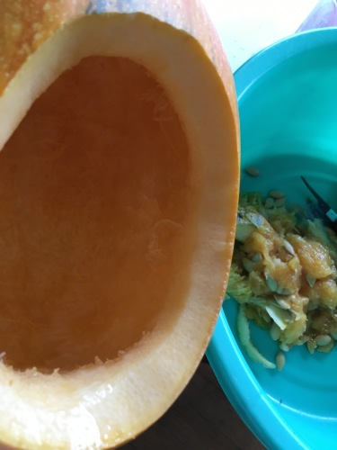 腐っている部分に穴を開けてそこから種とワタを取り出し、ちょっと早いですがパンプキンカービングの作例として活用することにしました。