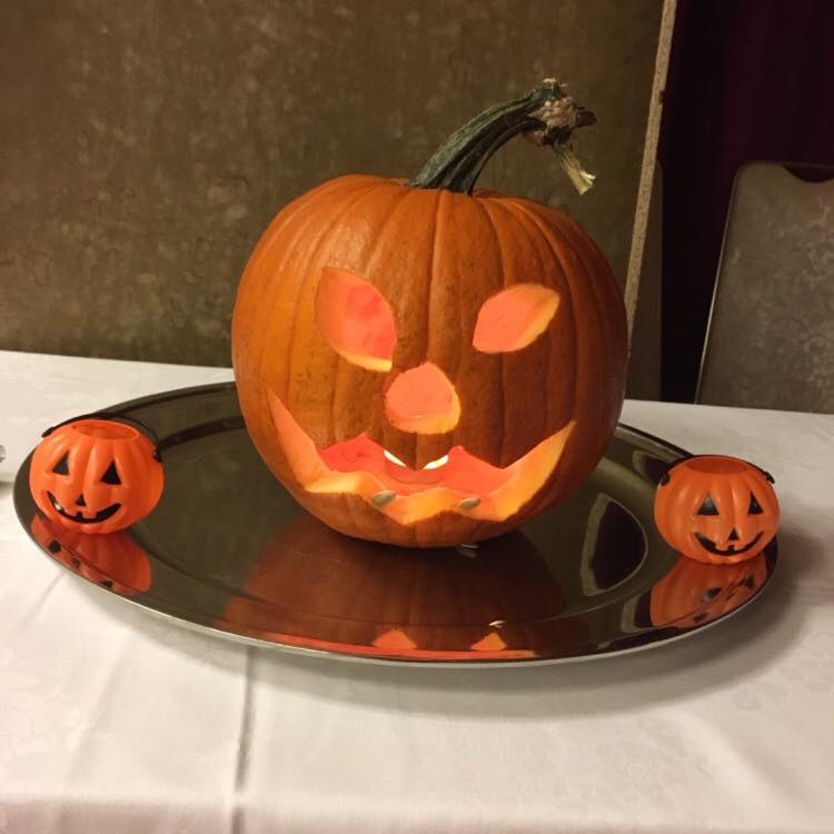 あと主催がJA、つまり農協ということで、別のスタッフの方からこんな差し入れもありました。本物のハロウィンパンプキンを使ったジャック・オ・ランタンです。