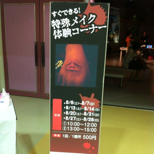 いよいよ明日から秋田ふるさと村のお化け屋敷前にて特殊メイク体験コーナーを出展させて頂くのですが、それを英語で告知しようと思ってもいい感じの言い回しが思いつかないのです。