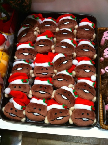 クリスマスバージョンのなめこの寝そべりマスコットがぎっしり!ぎゅうぎゅうに詰まってます。