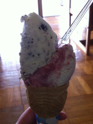 曇り空時々雨という悪天候だったのにあまりの人の熱気に暑くなり、最後にジェラートを購入。