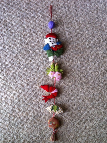 こちらも前述の吊るし飾り。全部ちりめんの手縫いで1000円!