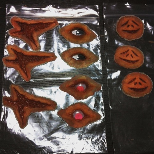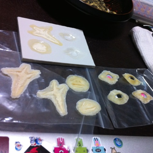 予想外に秋田ふるさと村の特殊メイク体験コーナーが好評のため、前の夜から明け方にかけて大急ぎでスリップラバーアプライエンスを増産しました。とりあえず10人分できたので少しは余裕が出るかな…と思ったのですが