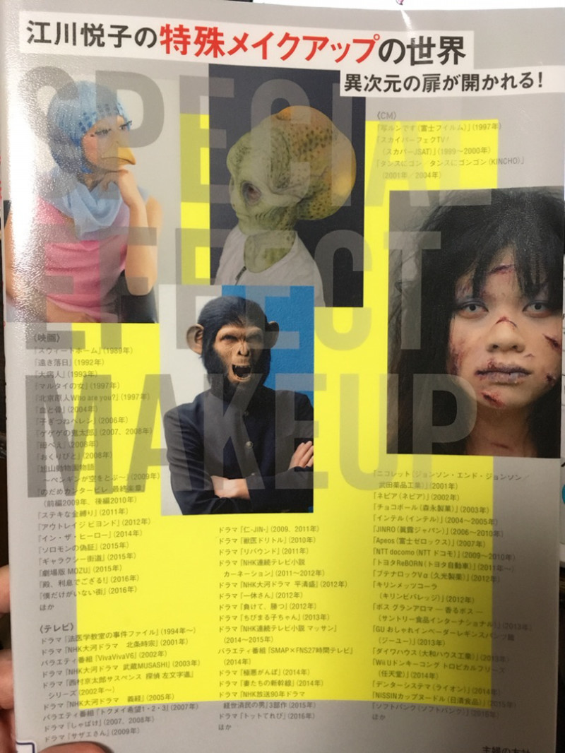 江川悦子さんという方は、日活撮影所内にメイクアップディメンションズという特殊メイクの会社を設立し活動している方で、ありとあらゆるタイプの映画、ドラマ、CMの特殊メイクや特殊造型を手掛けられています。おそらく彼女の作品を全く見たことのない人なんて日本にはいないでしょう。そんあパイオニアの方が初歩的なものから本格的なものまでさまざまなタイプの特殊メイクの手法を解説しているのですが、上手いのは…