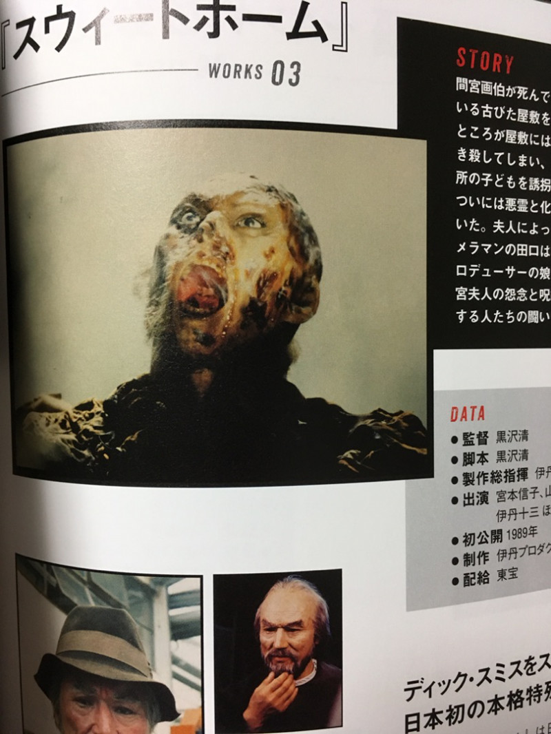 とはいえ、本書は何気に読み物のページも面白く、特に権利関係で未だにソフト化が実現していない幻のホラー映画の傑作「スウィートホーム」についての記事が写真付きで掲載されているのは非常に貴重です。これ、スーパーバイザーを「特殊メイクの神」と言われているディック・スミスさんが担当しているんですよね。ここから日本のホラー映画における特殊メイクの歴史が始まったと言っても過言ではない作品なので、是非権利がクリアになって誰でも気軽に見れるようになって欲しいと思います。