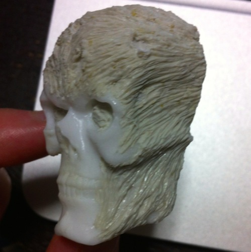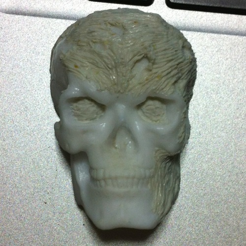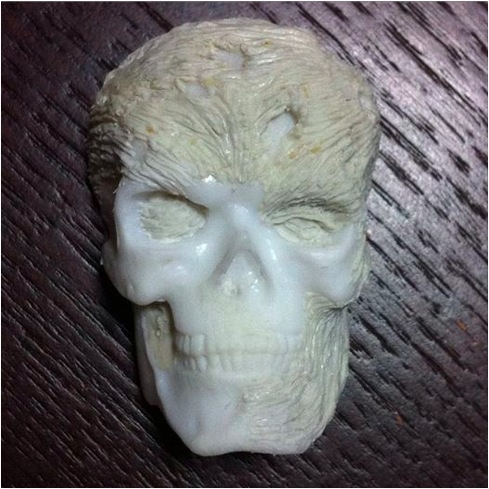 大文字の後立にドクロの前立。兜本体と一体化しているということは、鉄の打ち出し?