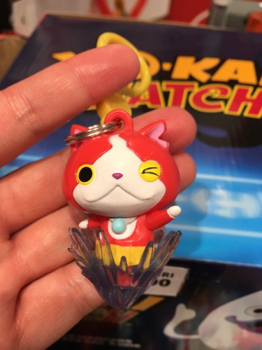 これはブラインド仕様になっている妖怪ウォッチのフィギュアマスコット。シークレット含め全12種類あり、そのいずれかが入っているというガチャみたいな商品です。フィギュアマスコットは箱に入れられているため触って形を確かめることはできません。1個10ユーロ(約1225円)とかなり高価でしたが、それでもレジ前に置かれていて売れているようでした。