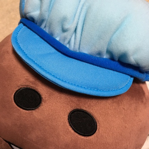ざっと全体を見てみたのですが、とてもプライズ景品とは思えない丁寧な作りでした。なめこ本体と衣装に別の布が使い分けられており、さらに帽子も箇所によって布が使い分けられています。なめこ本体も起毛した肌触りの良い布でふわふわのサラサラ。