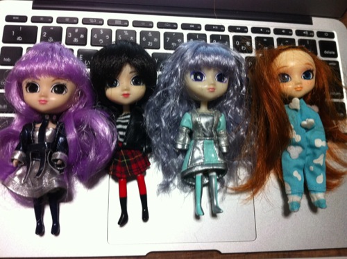 こちら)。聖飢魔IIプーリップを作る際に素材としてドールヘアを切り取ってしまったため一番右の子が悲惨な状態になっているのはそのため。
