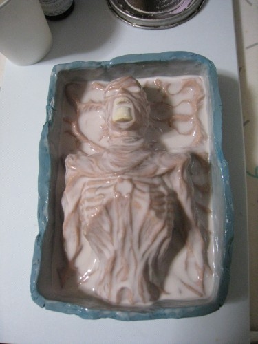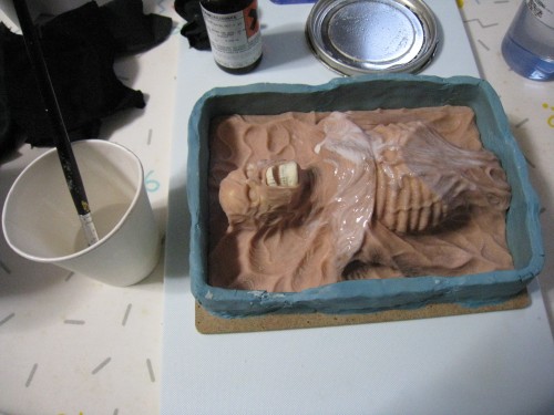 ちなみにこれは特殊メイクの技法で、この石膏の補強のことを”ジャケット”といいます。
