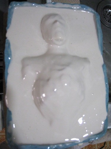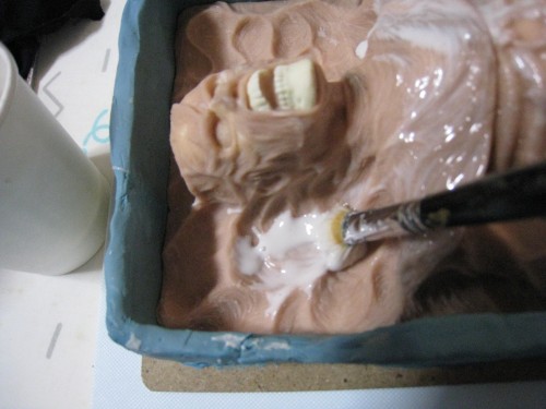 そこで、表面だけシリコンを使用して補強部分は石膏で代用するわけです。