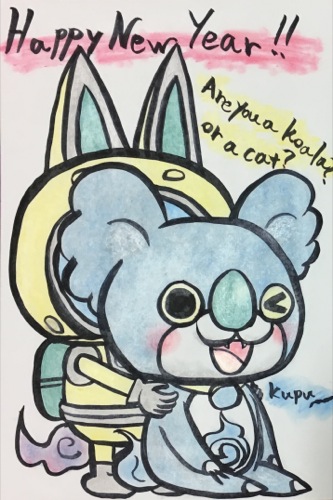 初描きのコアラニャンです。映画はまだ見ていません。それにしてもこいつはコアラ妖怪なんですか?猫妖怪なんですか?言葉を喋らないのも気になります。